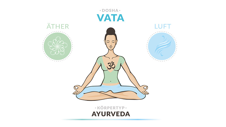 Vata ist das Dosha, das durch die Vorherrschaft von Äther und Luft gekennzeichnet ist. Es ist die Bewegung im Körper, wie ein Windstoß, die beschleunigende Kraft aller treibenden Prozesse und Bestrebungen. Physiologisch gesehen ist Vata für das Atmungssystem, die Blutzirkulation, die Nervenimpulse und das Gehen verantwortlich.